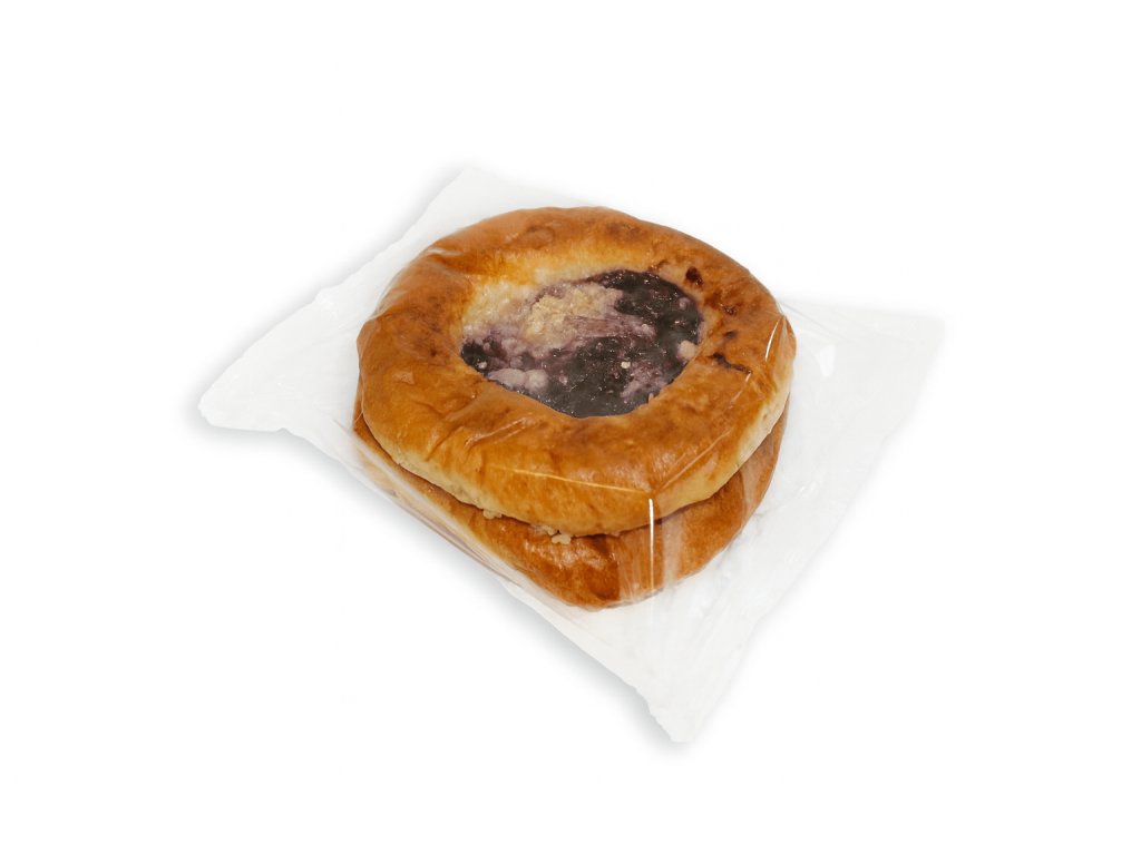 Čučoriedková náplň 37 % (ovocné pyré (jablko (80 %), arónia (20 %), čučoriedky (15 %)), cukor, glukózo-fruktózový sirup, modifikovaný škrob, regulátor kyslosti: kyselina citrónová, aróma, konzervačná látka: sorban draselný)), pšeničná múka, voda, rastlinný tuk (palmový olej, repkový olej, emulgátor: E471, soľ, farbivo: karotény), droždie, pekársky zlepšujúci prípravok (laktóza, protihrudkujúca látka: E551, regulátor kyslosti: E341(i), múku upravujúca látka: kyselina askorbová, enzýmy)), mašľovacia zmes (mliečna bielkovina, emulgátor: sójový lecitín).
