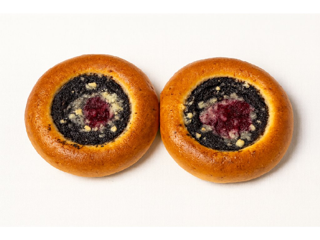 Pšeničná múka, voda, cukor, maková náplň (cukor, tepelne upravený mak, pšeničná múka bobtnavá, modifikovaný škrob, sušený vaječný bielok), rastlinný tuk (rastlinné oleje (palmový, repkový), emulgátor: E471, soľ, regulátor kyslosti: kyselina citrónová, konzervačná látka: sorban draselný), višne, droždie, posýpka (pšeničná múka, cukor, repkový olej), mašľovacia zmes (mliečna bielkovina, emulgátor: sójový lecitín), pekársky zlepšujúci prípravok (aróma (obsahuje laktózu), protihrudkujúca látka: E551, regulátor kyslosti: E341, múku upravujúca látka: kyselina askorbová, enzýmy).