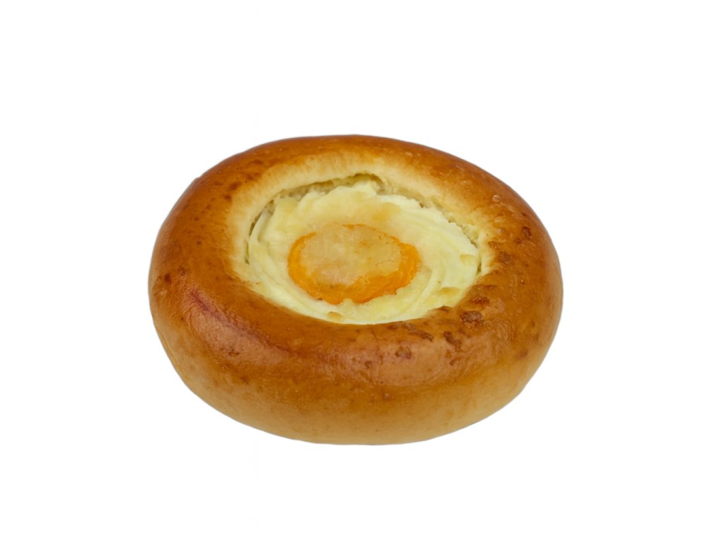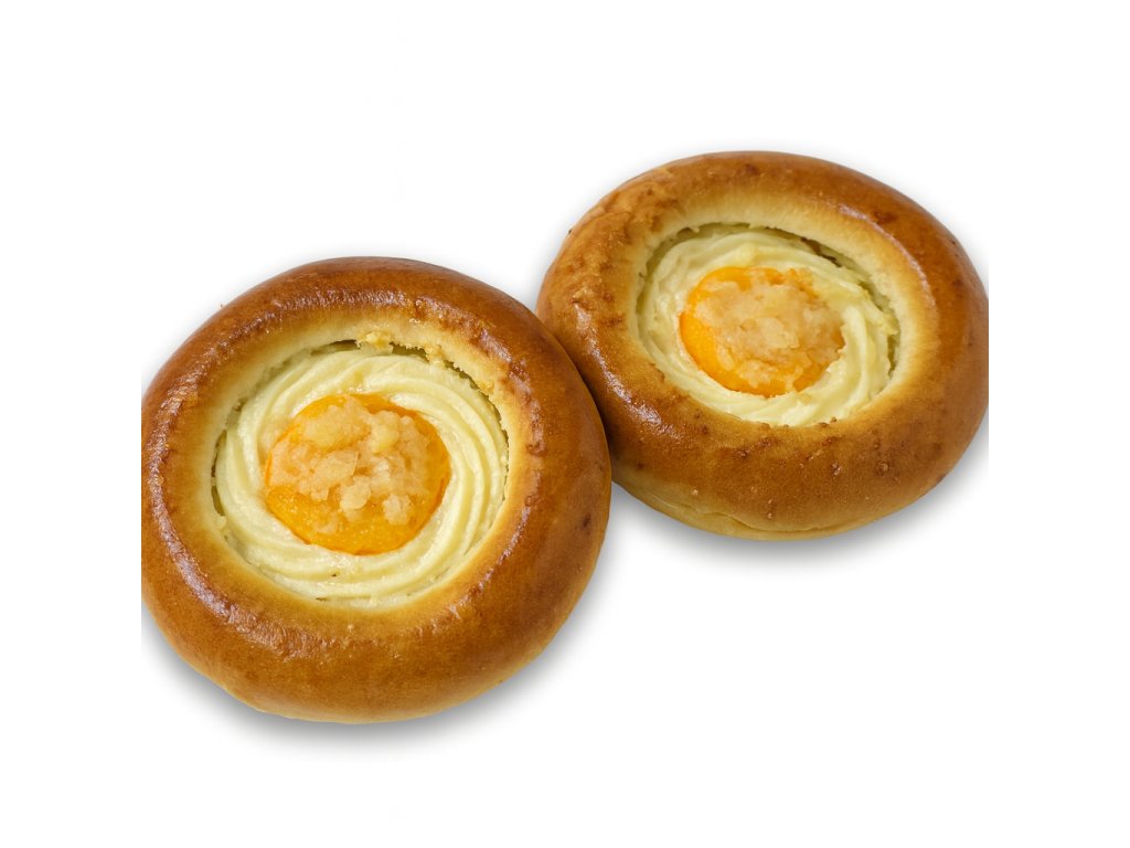 Pšeničná múka, voda, cukor, tvarohová náplň (odtučnené mlieko, bakteriálna mliečna kultúra, syridlo, vanilková zmes (cukor, modifikovaný škrob (zemiakový, kukuričný), sušená srvátka, sušený vaječný bielok, emulgátor: E471, regulátor kyslosti: kyselina citrónová, jodidovaná soľ, aróma, farbivo: karotény)), rastlinný tuk (rastlinné oleje (palmový, repkový), emulgátor: E471, soľ, regulátor kyslosti: kyselina citrónová, konzervačná látka: sorban draselný), marhuľa, droždie, posýpka (pšeničná múka, cukor, repkový olej), mašľovacia zmes (mliečna bielkovina, emulgátor: sójový lecitín), pekársky zlepšujúci prípravok (aróma (obsahuje laktózu), protihrudkujúca látka: E551, regulátor kyslosti: E341, múku upravujúca látka: kyselina askorbová, enzýmy).