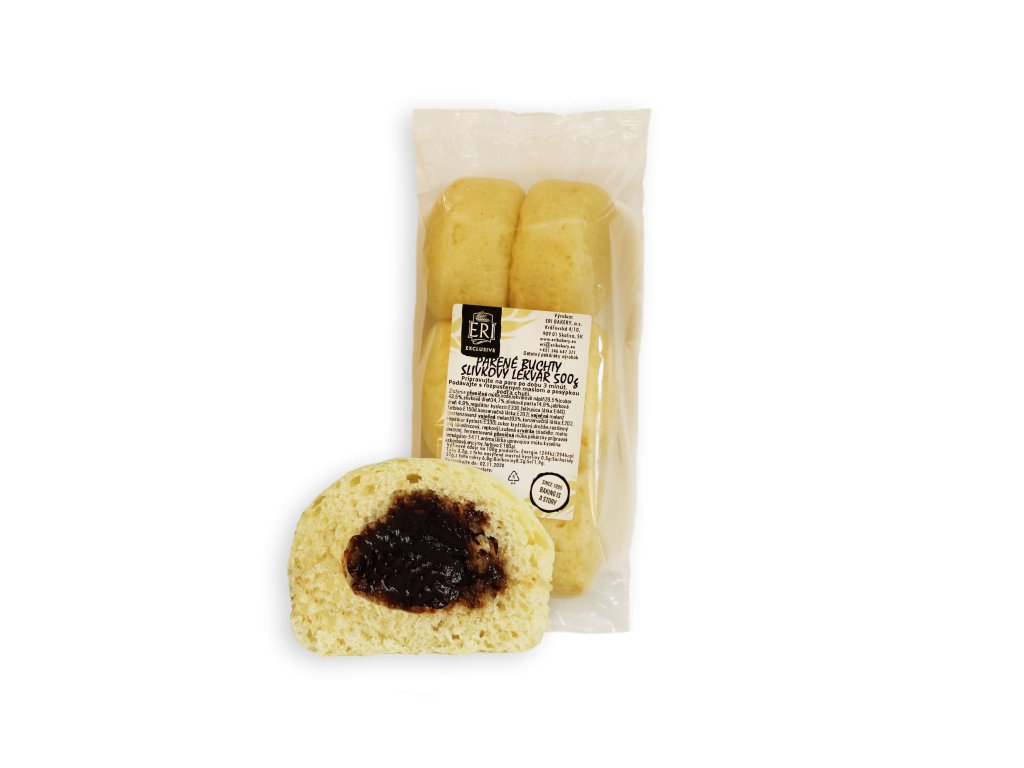 Pšeničná múka, voda, slivková náplň 21,9 % (cukor, slivková dreň (34,7 %), slivková pasta (14,9 %), jablková dreň (4,9 %), regulátor kyslosti: kyselina citrónová, želírujúca látka: pektín, farbivo: E150d, konzervačná látka: sorban draselný), repkový olej, droždie, jodidovaná soľ, sušené mlieko, sušené vajcia, pšeničná múka fermentovaná, pekársky zlepšujúci prípravok (emulgátor: E471, aróma (obsahuje laktózu), protihrudkujúca látka: E551, regulátor kyslosti: E341(i), múku upravujúca látka: kyselina askorbová, enzýmy, farbivo: karotény)).