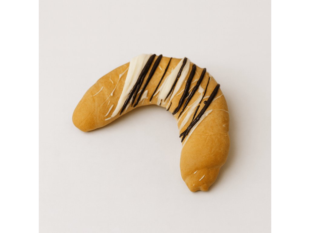 Jemné kysnuté cesto plnené lahodnou vanilkovou pudingovou náplňou, zdobené kakaovou a vanilkovou polevou pre dokonalý sladký zážitok.
