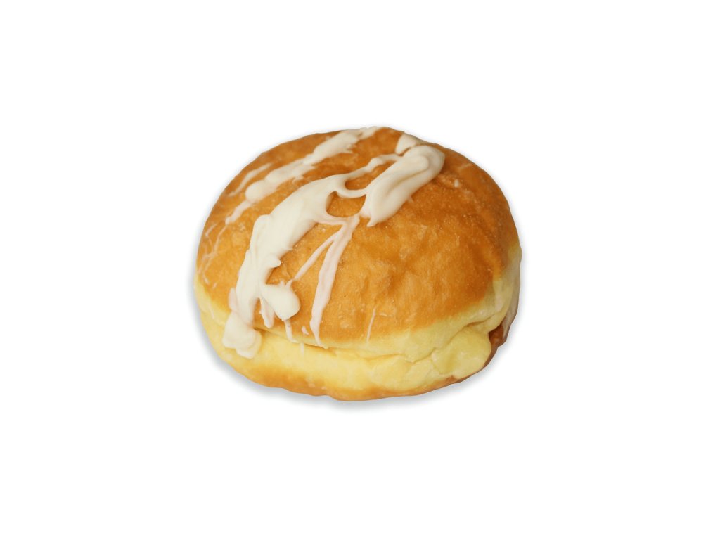 Nadýchané cesto plnené lahodnou nugátovou náplňou s arašidmi a kakaom, zdobené jemnou vanilkovou polevou.