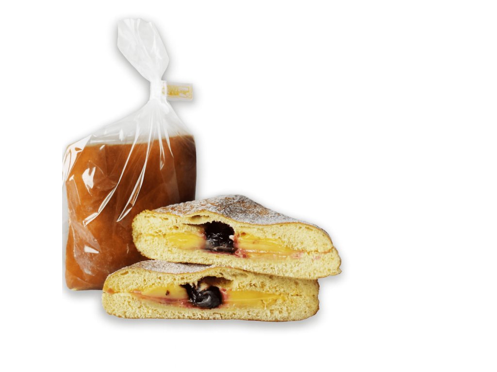 Lahodné kysnuté cesto plnené jemnou pudingovou a ovocnou náplňou, spájajúce sladkú krémovosť s ovocnou sviežosťou.